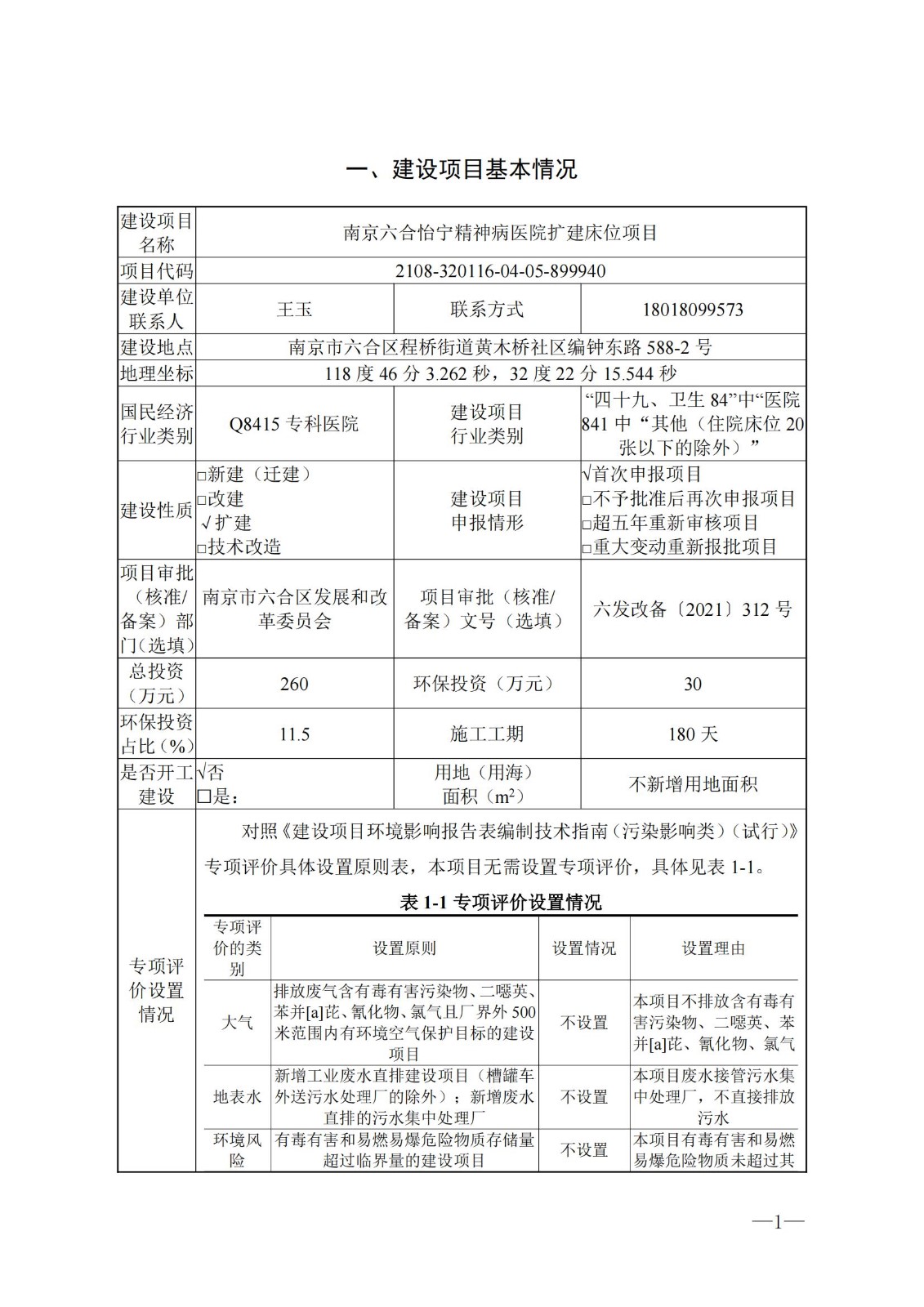 南京六合怡寧精神病醫(yī)院擴建床位項目公示